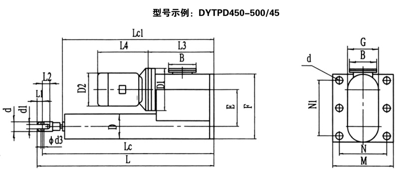 (型号示例: DYTPD450-500/45) 单位:(mm )